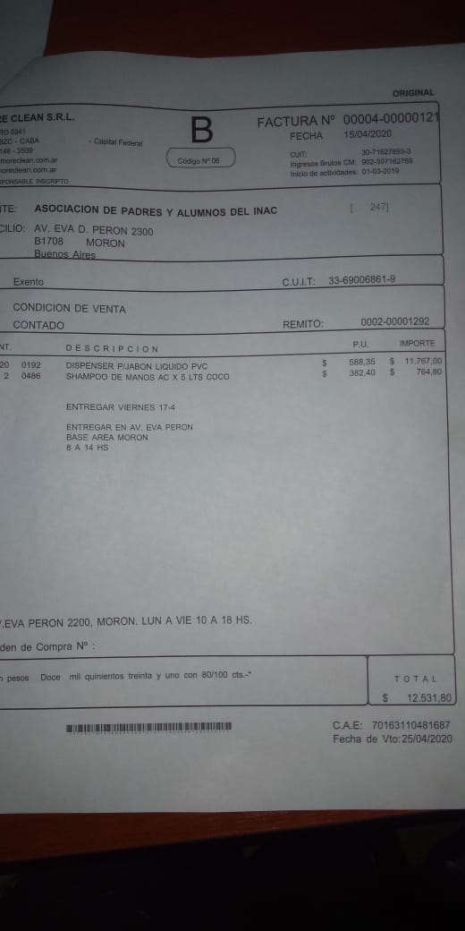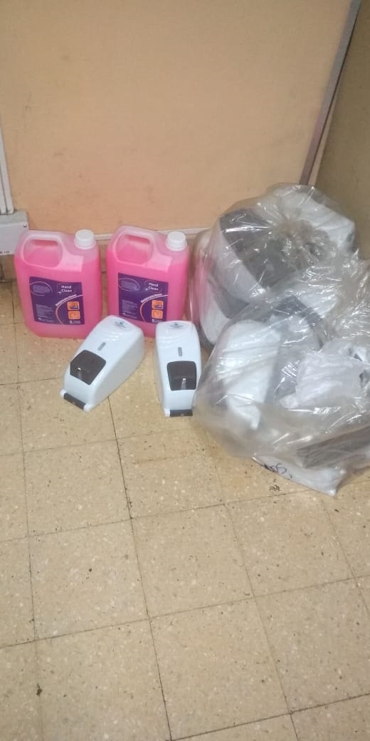 Se recibieron los dispensers para jabón líquido y el jabón para ser colocados en todos los baños. También el alcohol en gel y alcohol común. Cuando reinicien las clases,