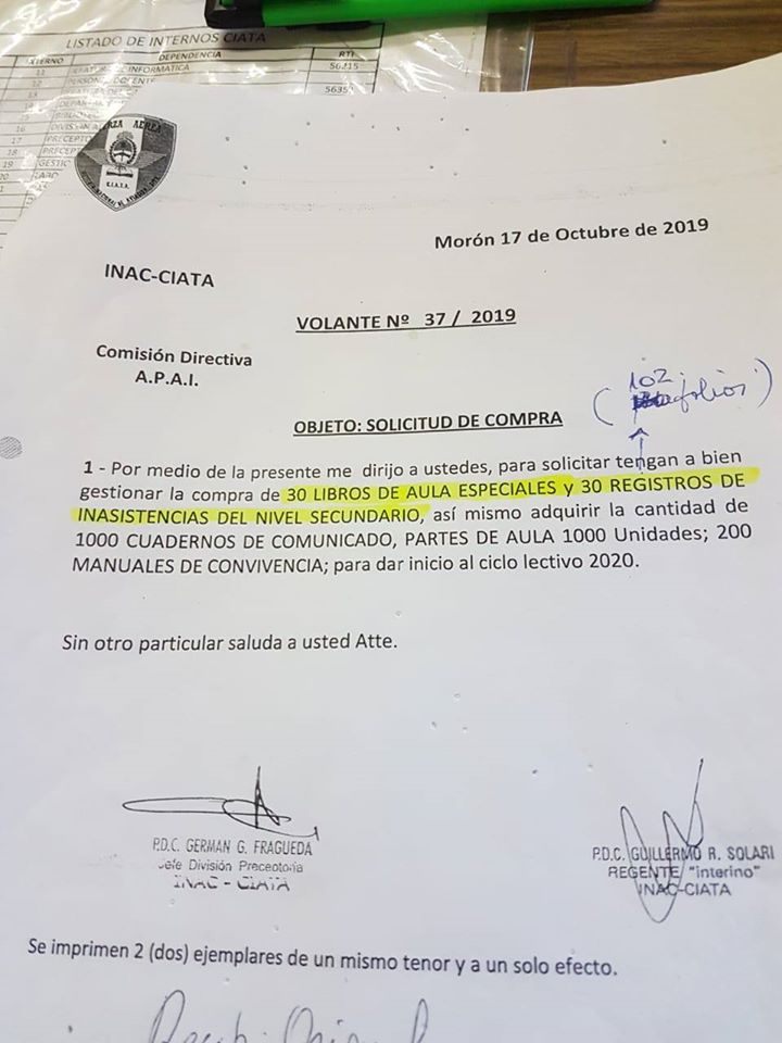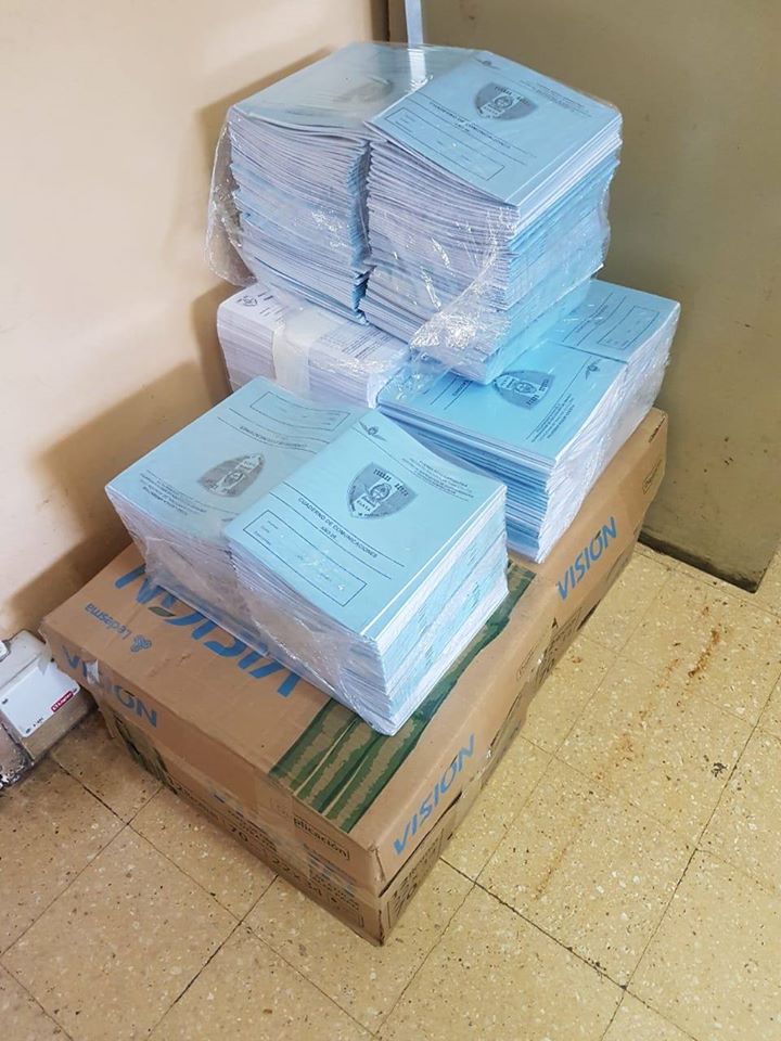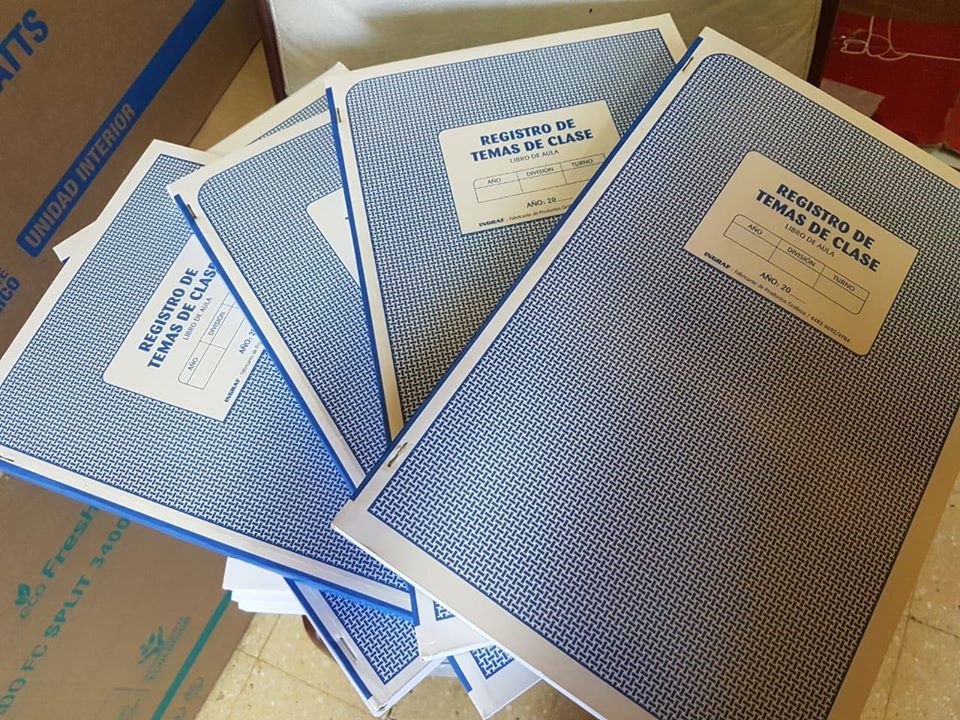 Recibimos y abonamos parte del pedido de cuadernos de comunicados, libros de aula, registros de inasistencias, partes de aulas y manuales de convivencia.