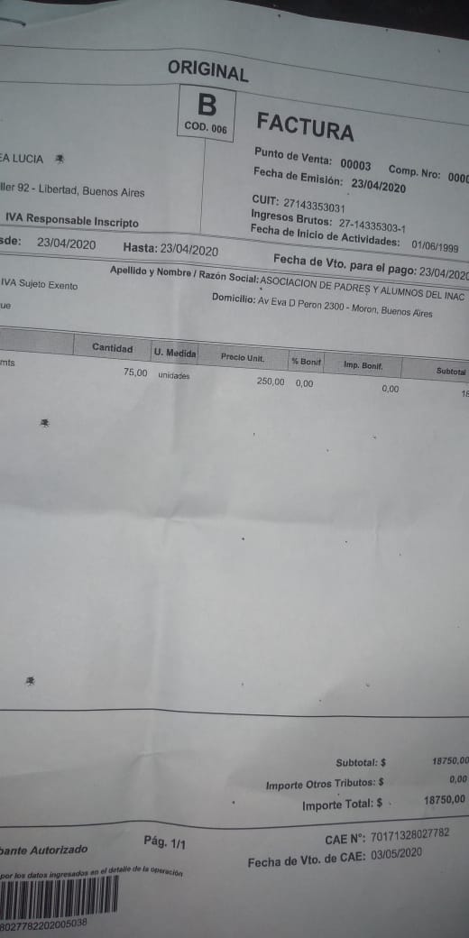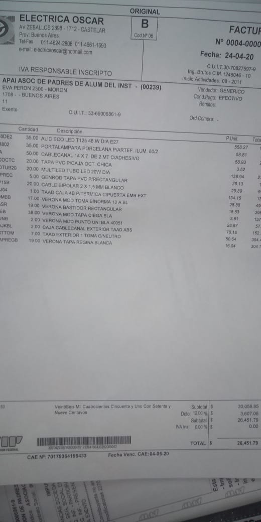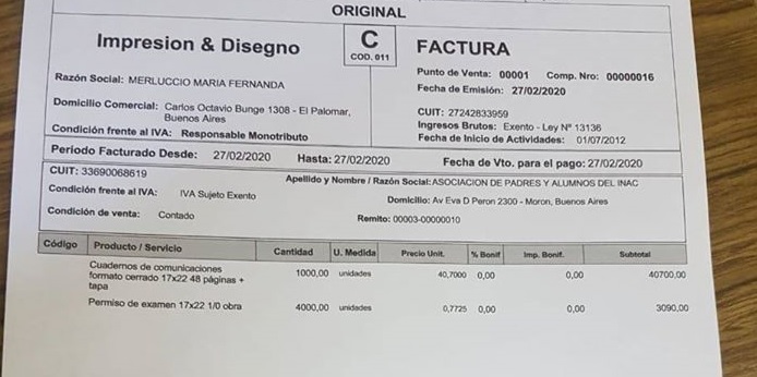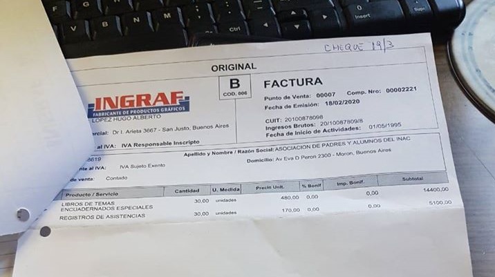 Se recibió y abonó el resto del pedido de cuadernos de comunicados y permisos de exámenes.