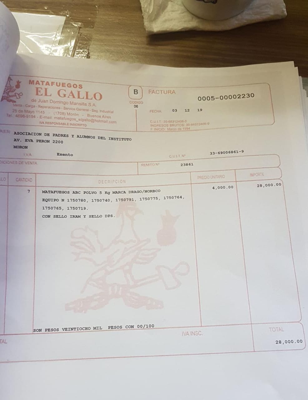 Recibimos los matafuegos para reponer los ya vencidos e inhabilitados
