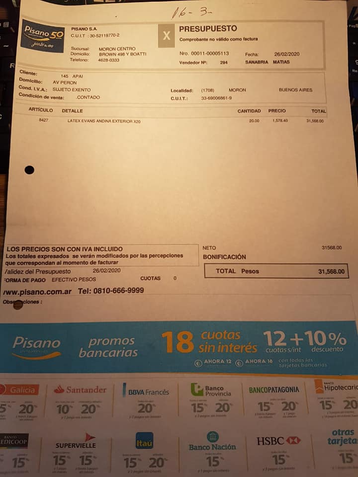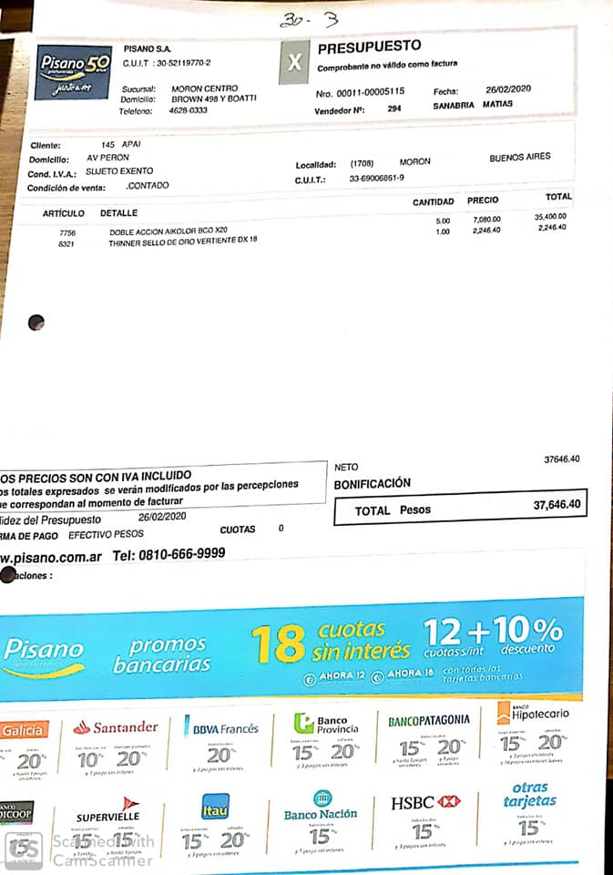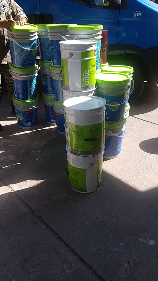 Se compraron 400lts de pintura para interiores y 100lts de sintético. Además 18 lts de thinner. La pintura será utilizada para pintar las aulas.