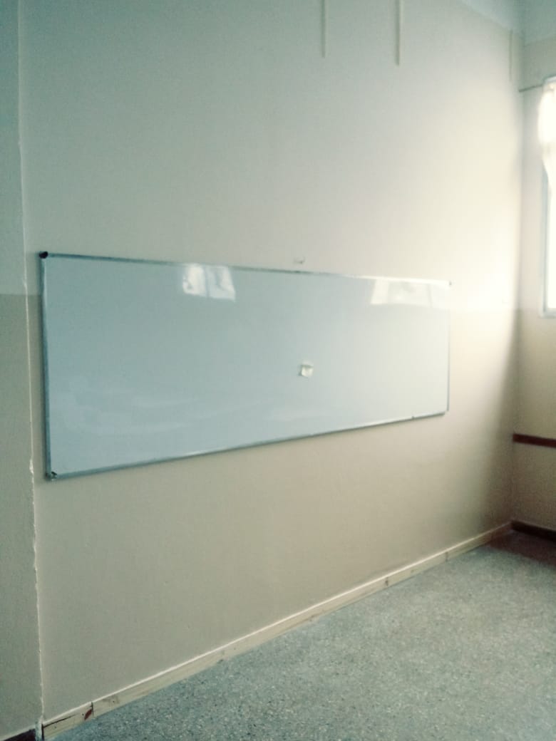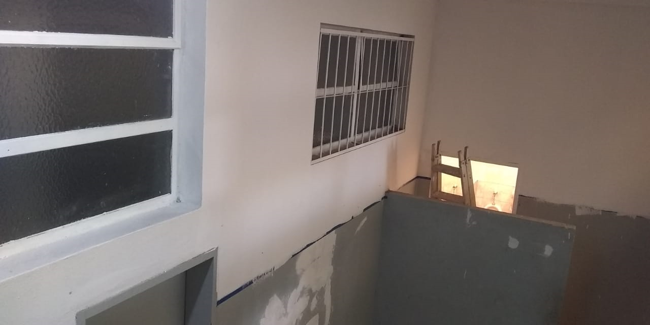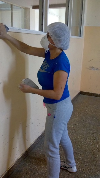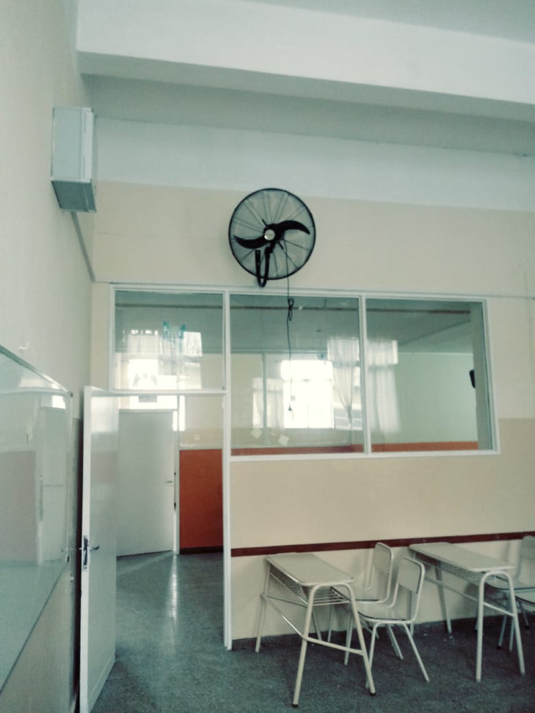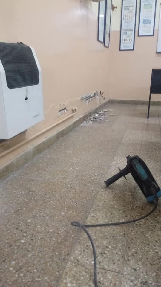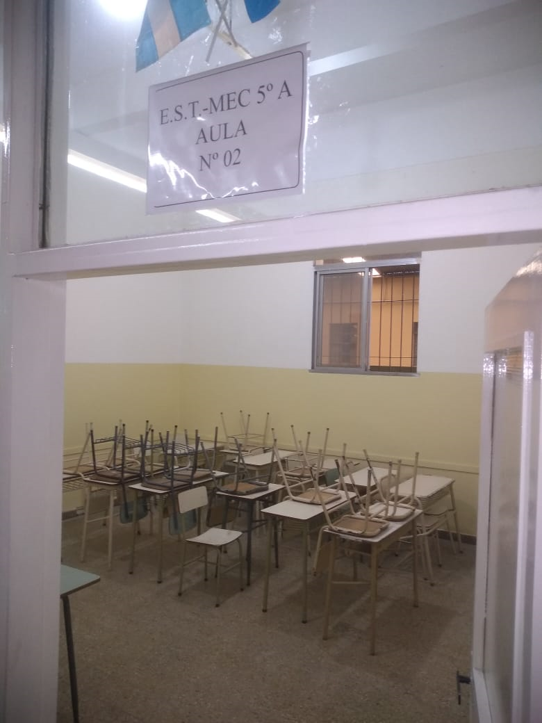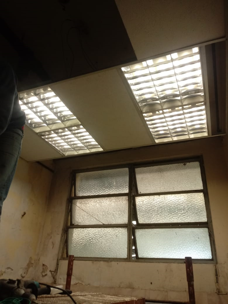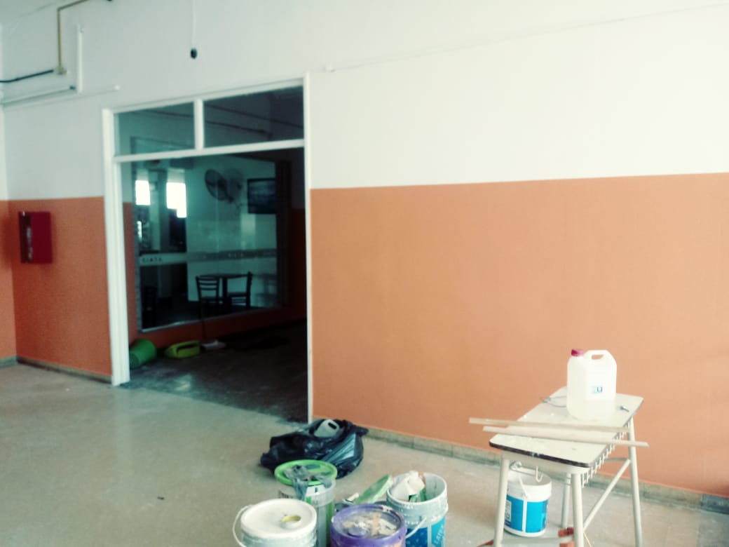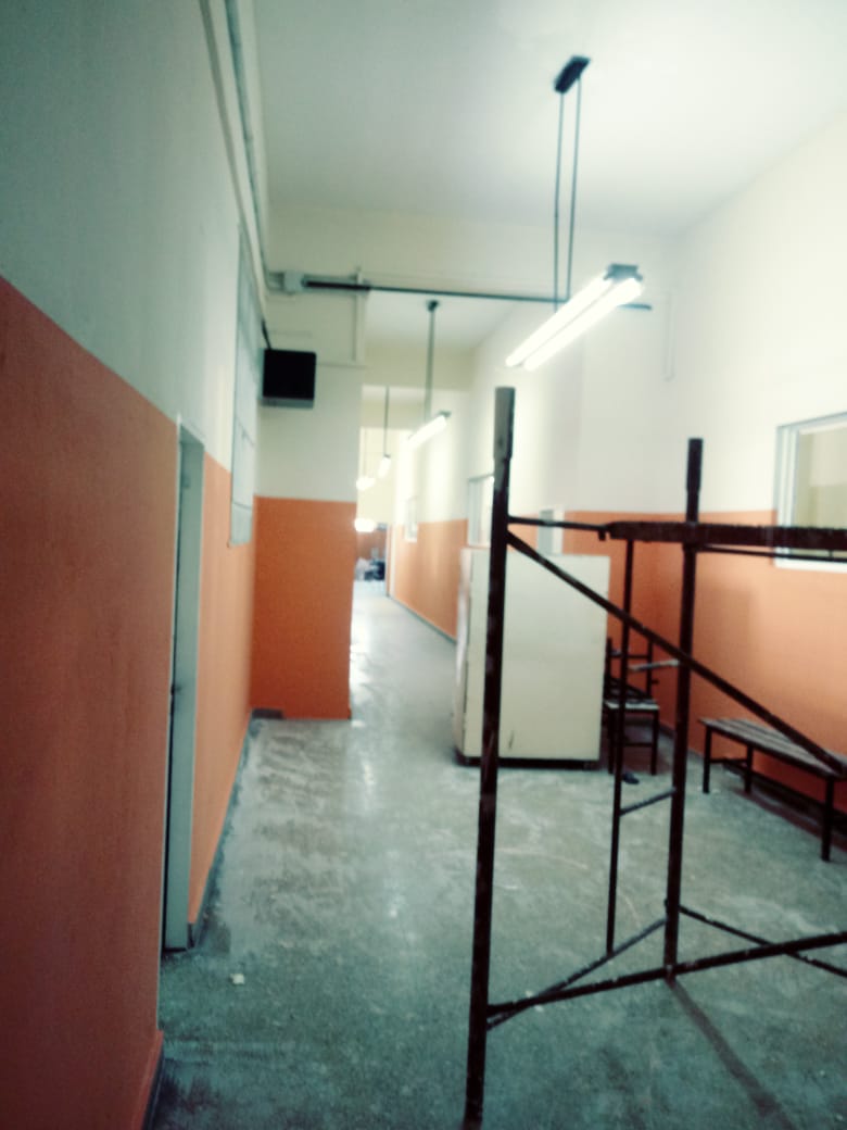 Se comenzó con los trabajos de reparación y pintura en las aulas. Se arreglaron las zonas rotas, pintura de paredes, reemplazo de luminarias rotas y llaves de luz, zócalos y topes de madera para evitar golpear con los bancos. En esta primera etapa, zona de ciclo superior.