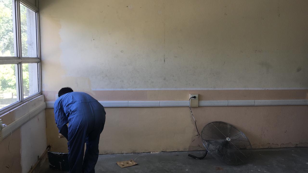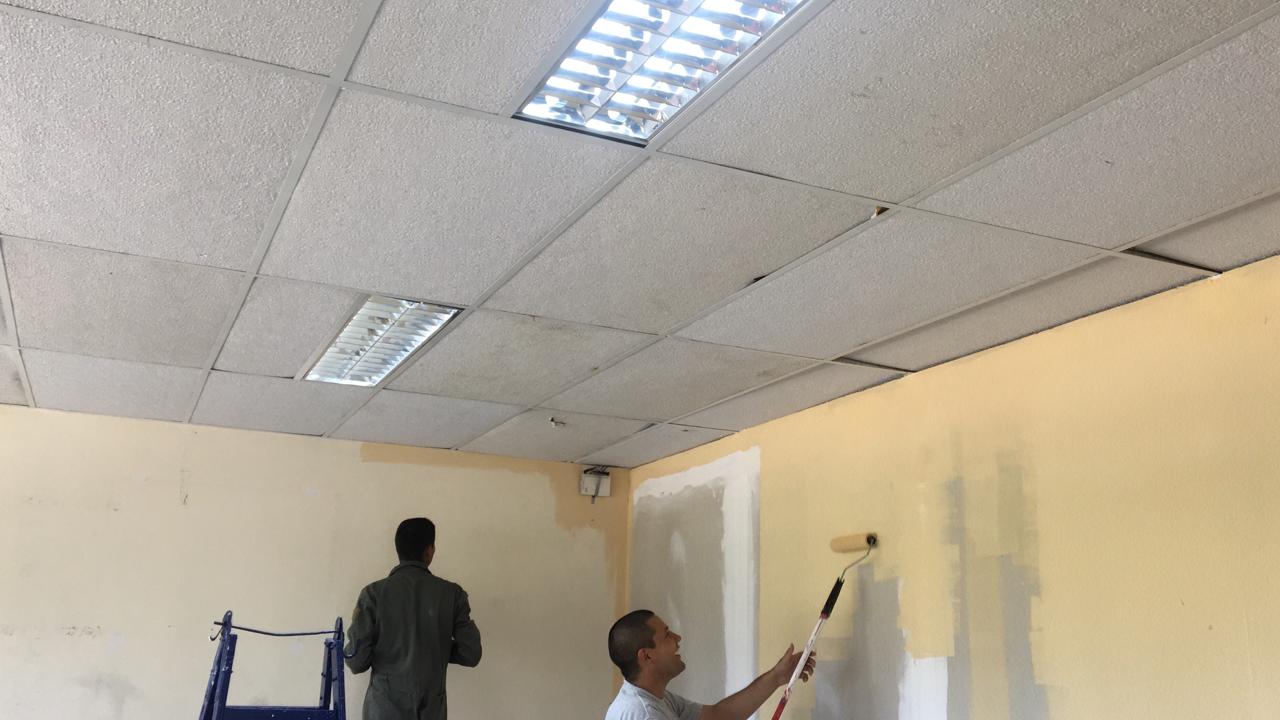 Alumnos del Curso: Mecánico de Mantenimiento de Helicópteros, pintando y adecuando su futura Aula.