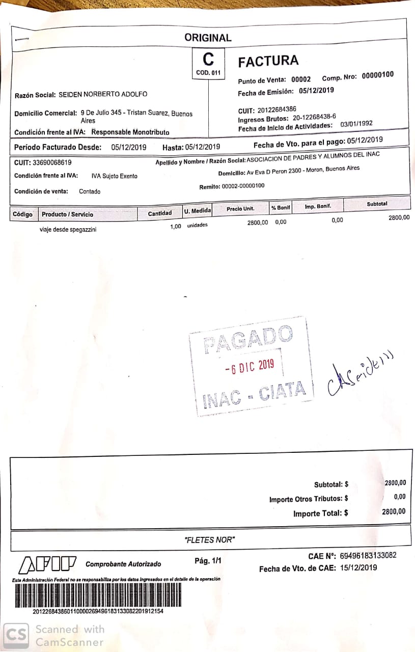 Custom Iron Welder, dona la reparación de la soldadora. Es retirada el día 30/9/2019 del Instituto y entregada en Prestaciones Eléctricas, de la localidad de Ciudadela para su reparación.