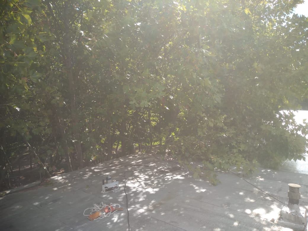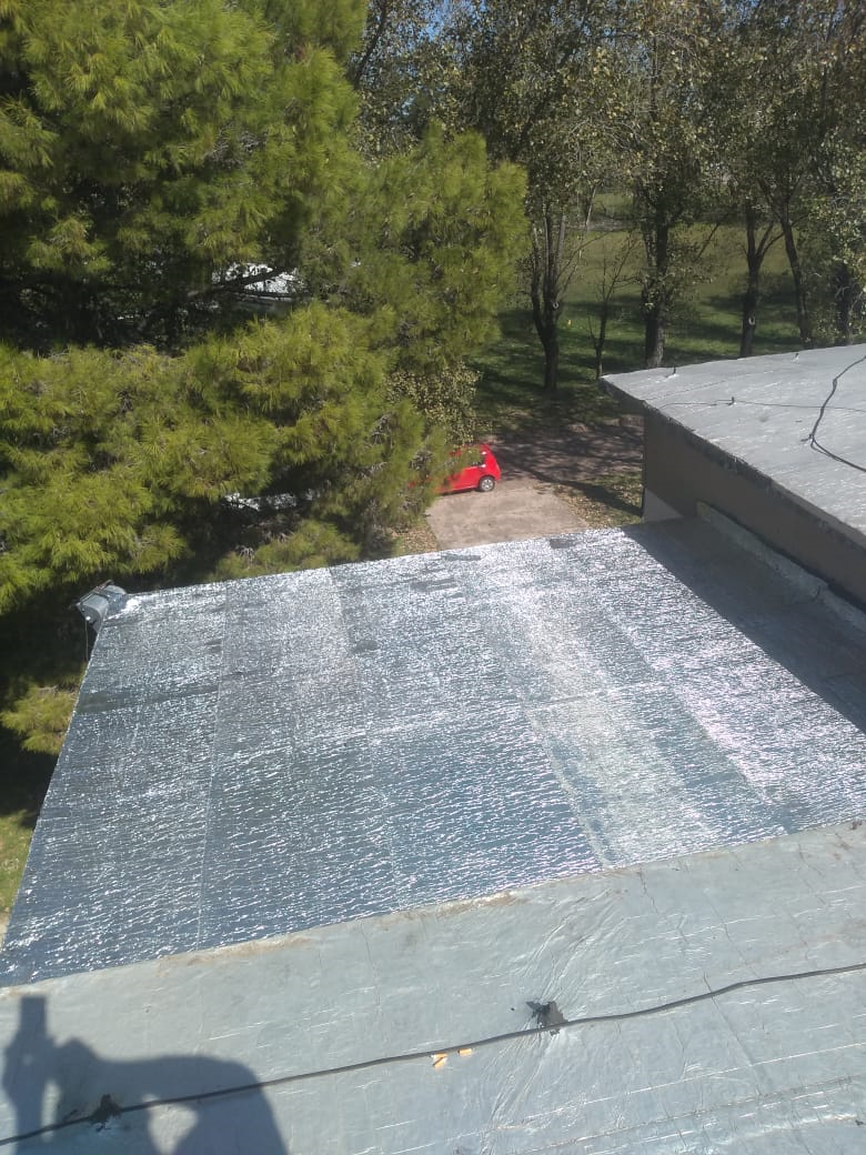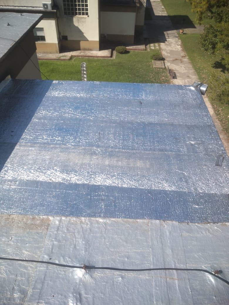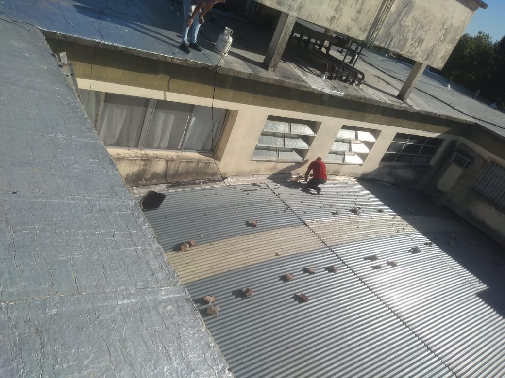 Se realizó una limpieza de los techos de ramas que crecieron y levantaron partes de la membrana. Luego se procedió al reemplazo de las membranas afectadas.