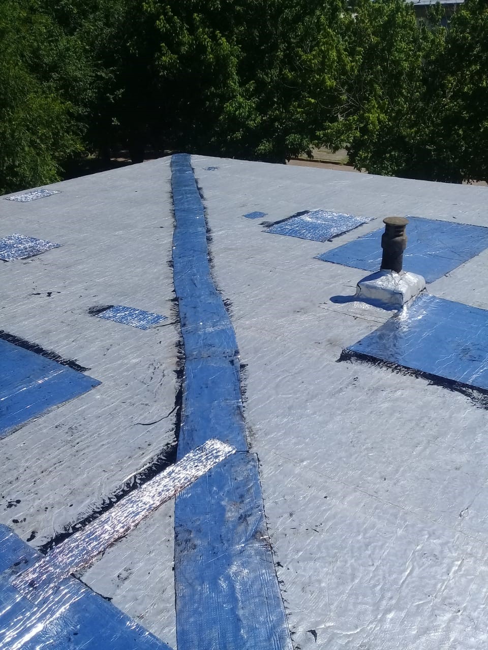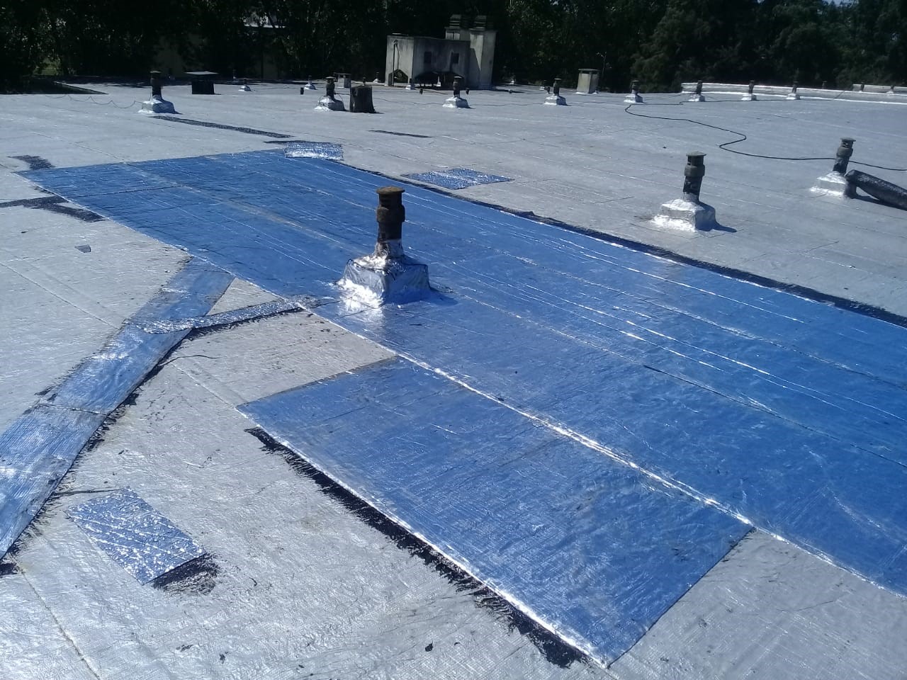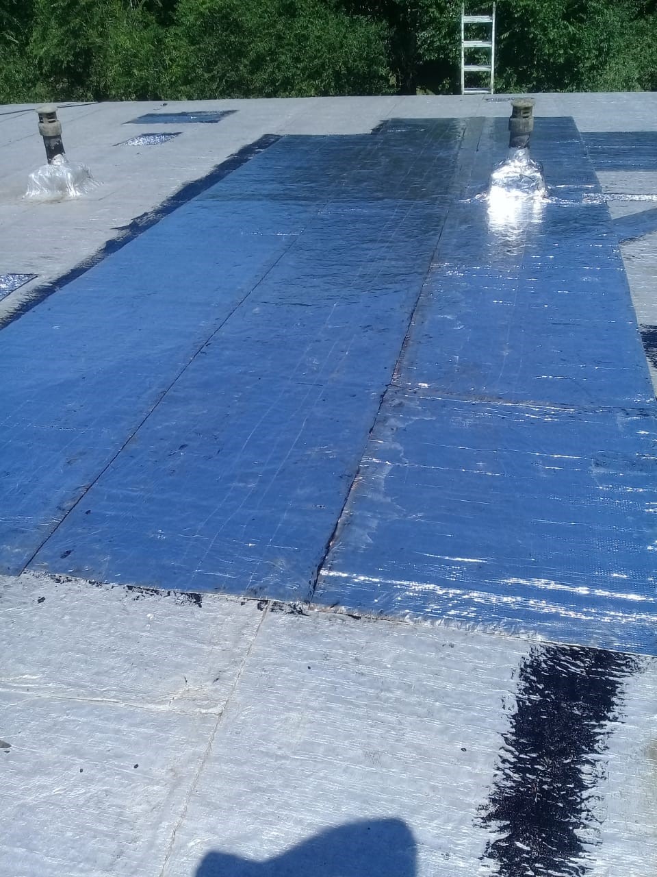 Se realizó una limpieza de los techos de ramas que crecieron y levantaron partes de la membrana. Luego se procedió al reemplazo de las membranas afectadas.